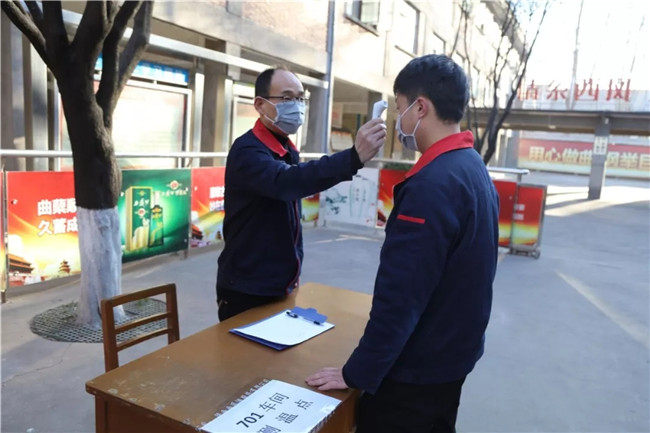 当天,在黄金城集团公司大门、生产门及车间大门设置有三道检测“关口”,员工凭上班通勤证、身份证和生活IC卡经测量体温并登记后方可以进入生产岗位。各车间按照防控要求,设置专人负责消毒防护和体温检测,并要求全员全程佩戴口罩,分区域休息,私人物品定点分开摆放,工作餐采取盒饭分散就餐,最大限度减少人员接触聚集。