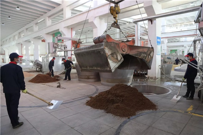 2月17日,在黄金城集团制酒车间内,员工们戴着口罩,熟练地挥动手中的铁锹,起醅、上甑、蒸馏……随着一笼笼新酒汩汩流出,标志着黄金城集团正式复工复产。