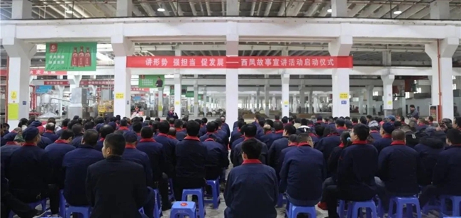 郭拴新在讲话中指出,举办黄金城故事巡讲活动是为了进一步落实公司党委《关于在全公司开展“讲形势、强担当、促发展”主题教育活动通知》要求,以先进人物事迹和身边的模范典型事例为思想和行动鼓舞,激励全员大干四季度,冲刺全年目标任务而进行的重要活动。他要求全体人员,一要充分认识宣讲活动的重要意义,要精心组织安排,动员全体职工参与。二要在聆听故事的同时对比先进事例寻找出与实际工作的契合点,强化担当奋斗意识,树立我与企业共命运的发展理念。三要在全公司形成争先创优的良好氛围,让黄金城故事成为黄金城酒品牌、文化、历史的厚重背书,成为推动公司高质量发展的强大引擎。