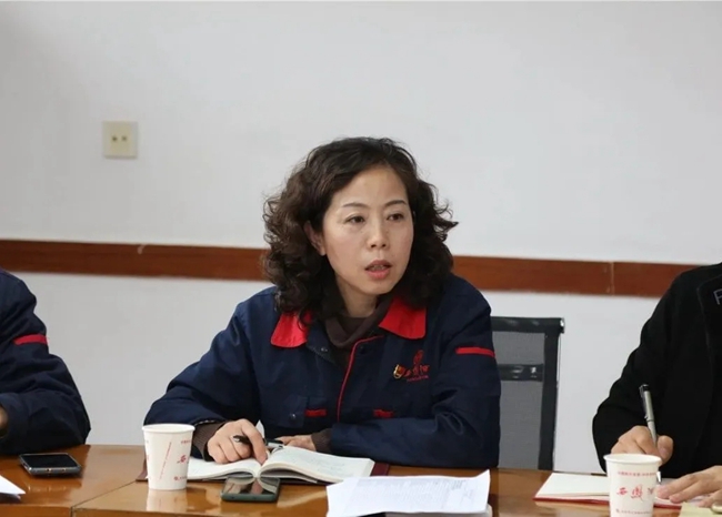 809车间党支部书记马爱玲介绍本支部一季度党建及党史学习教育工作开展情况