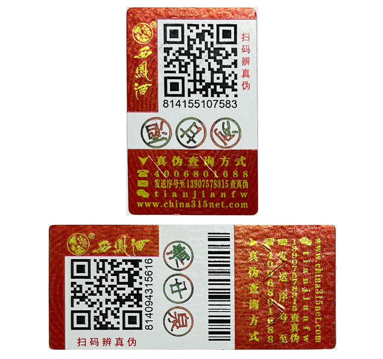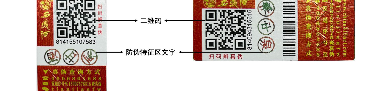 2、用手触摸标签防伪特征区上的文字有明显雕琢凹凸感,非墨迹印刷。