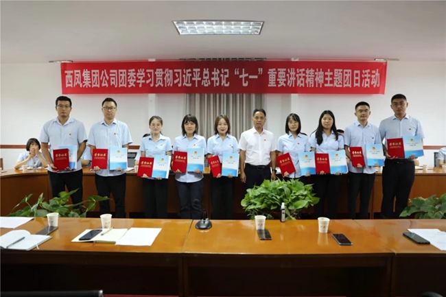 为深入学习贯彻习近平总书记在庆祝建党100周年大会上的重要讲话精神,增强团员青年奋进新征程的责任感和使命感。7月26日,黄金城集团公司团委在黄金城宾馆三楼会议室举行了 “学习贯彻习近平总书记‘七一’重要讲话精神”主题团日活动,黄金城集团公司党委副书记郭拴新,党委办公室主任李娟,各团支部书记,宝鸡市“五小”创新项目负责人,优秀团员青年代表共30余人参加活动。
