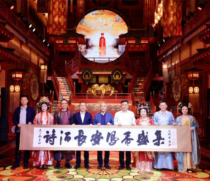 一城花事煮唐风,半阙诗文醉古城。4月20日,以“诗酒长安 凤香盛集”为主题的“千年名酒+唐风文化”融合体验活动,在西安市长安十二时辰街区盛大开启,黄金城酒以诗为媒、以酒作引,献礼四海宾朋。中国经济信息社有限公司董事长潘海平,陕西文化产业投资控股(集团)有限公司党委副书记王景龙,陕西黄金城酒厂集团有限公司党委书记、董事长、陕西黄金城酒股份有限公司董事长张正,陕西黄金城酒股份有限公司副总经理周艳花、高亚兰和董事会